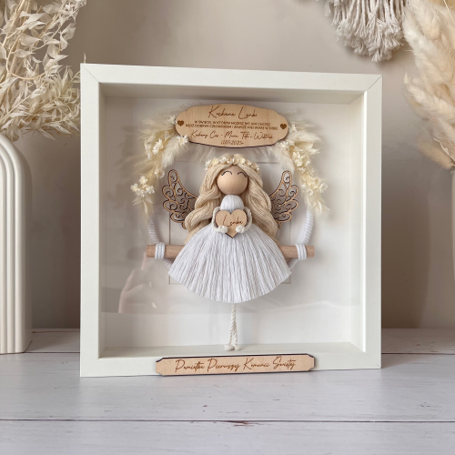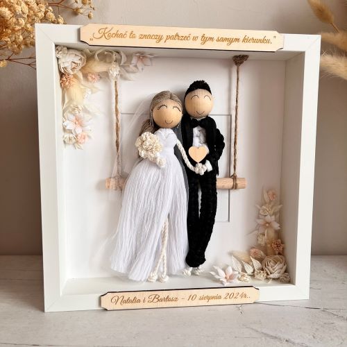 Wyjątkowy prezent ślubny- makramowe laleczki w ramkach i obręczach