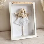 Makramowy anioł stróż umieszczony w eleganckiej gablotce to nie tylko wyjątkowy prezent na ważne uroczystości jak Komunia Święta, Chrzest czy roczek dziewczynki. To również idealny podarunek na Dzień Matki, urodziny czy podziękowanie dla nauczyciela. Stworzony z dbałością o najmniejszy szczegół zachwyci każdego miłośnika minimalistycznych dekoracji wnętrz.