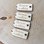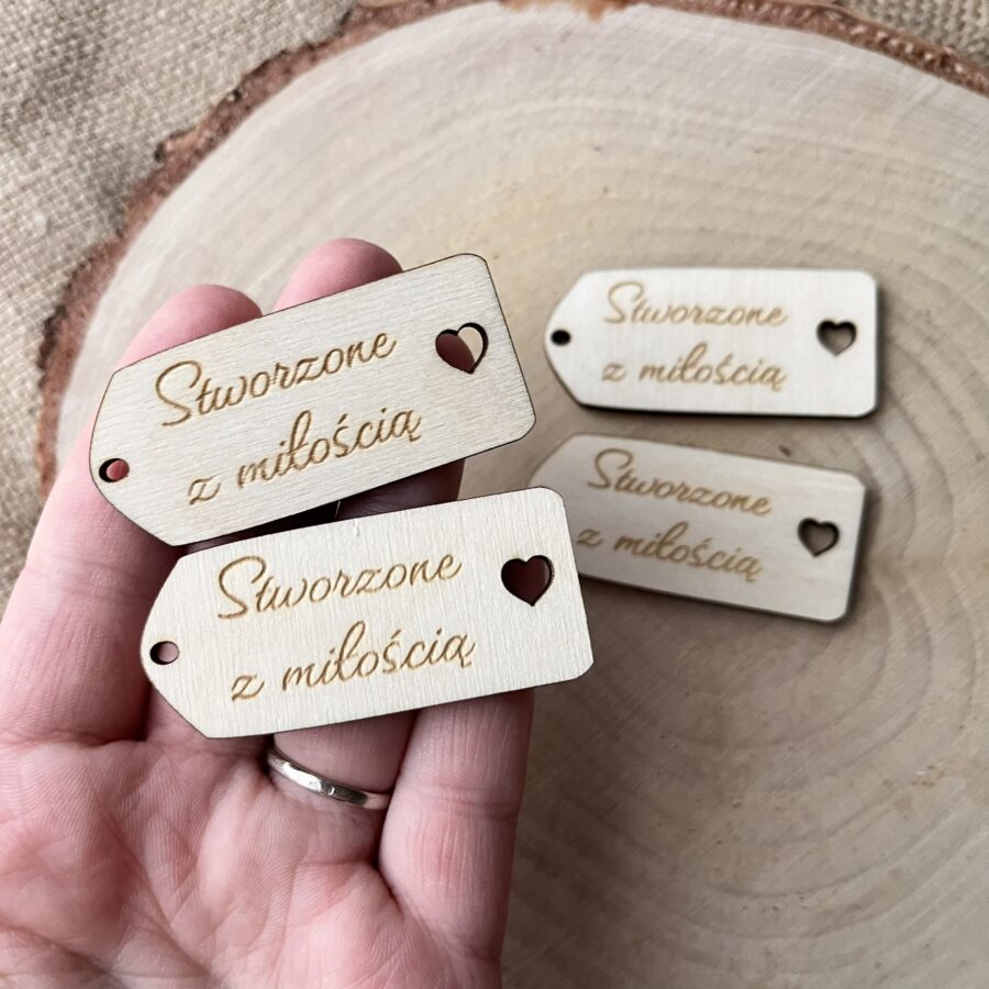 Drewniana etykieta, metka do zamówień, stworzone z miłością