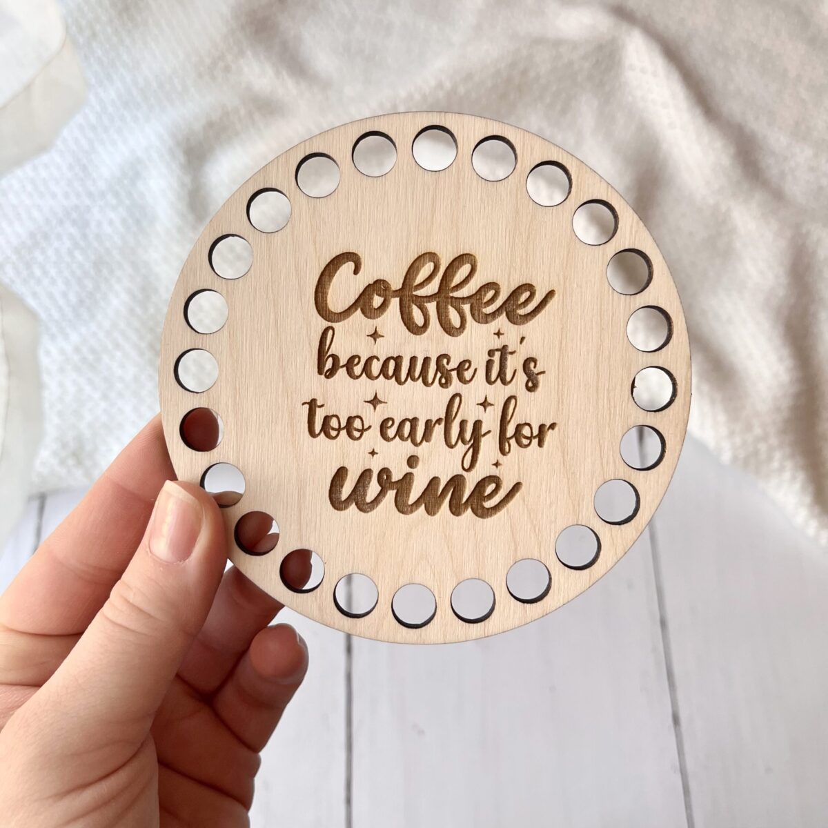 Drewniana podkładka pod kubek to doskonała baza do tworzenia wyjątkowych i funkcjonalnych dekoracji. Dzięki jej prostemu, ale eleganckiemu designowi świetnie sprawdzi się w projektach DIY, takich jak personalizowane prezenty, dekoracje do kuchni czy oryginalne upominki. Dziurki zostały stworzone specjalnie, ale wpleść w nie sznurek lub wykonać fantazyjny szydełkowy wzór.
