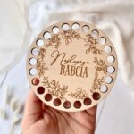 Drewniana podkładka pod kubek to doskonała baza do tworzenia wyjątkowych dekoracji z okazji Dnia Babci. Dzięki jej prostemu, ale eleganckiemu designowi świetnie sprawdzi się w projektach DIY, takich jak personalizowane prezenty, dekoracje do kuchni czy oryginalne upominki. Dziurki zostały stworzone specjalnie, ale wpleść w nie sznurek lub wykonać fantazyjny szydełkowy wzór.