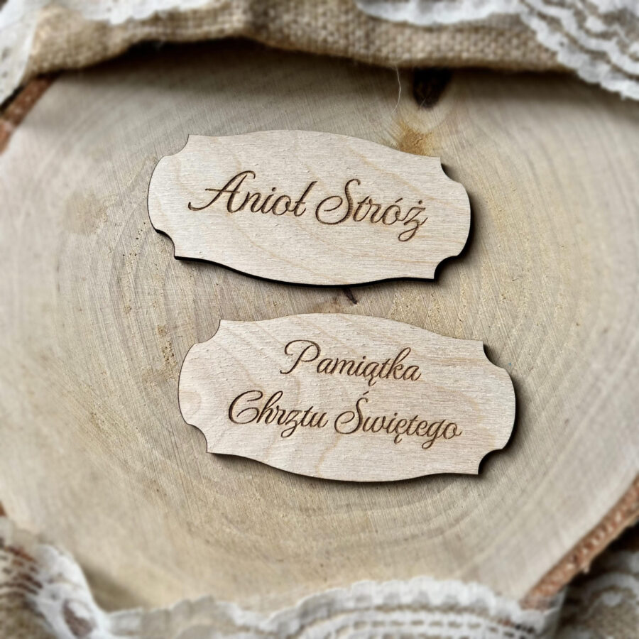 Personalizowana drewniana tabliczka o wymiarach 9cm x 4,5cm, wykonana z wysokiej jakości sklejki brzozowej o grubości 3 mm. Starannie wycięta, oszlifowana i pozbawiona okopceń, zapewnia elegancki i naturalny wygląd.