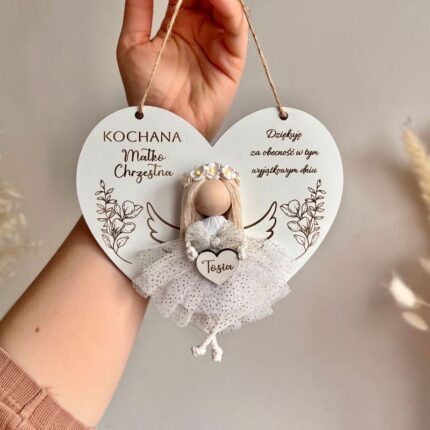 Drewniana tabliczka z zawieszką – wyjątkowe podziękowanie dla matki chrzestnej na Komunię i Chrzest Święty