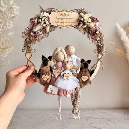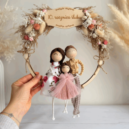 Makramowa rodzinka w obręczy, personalizowane laleczki (boho)