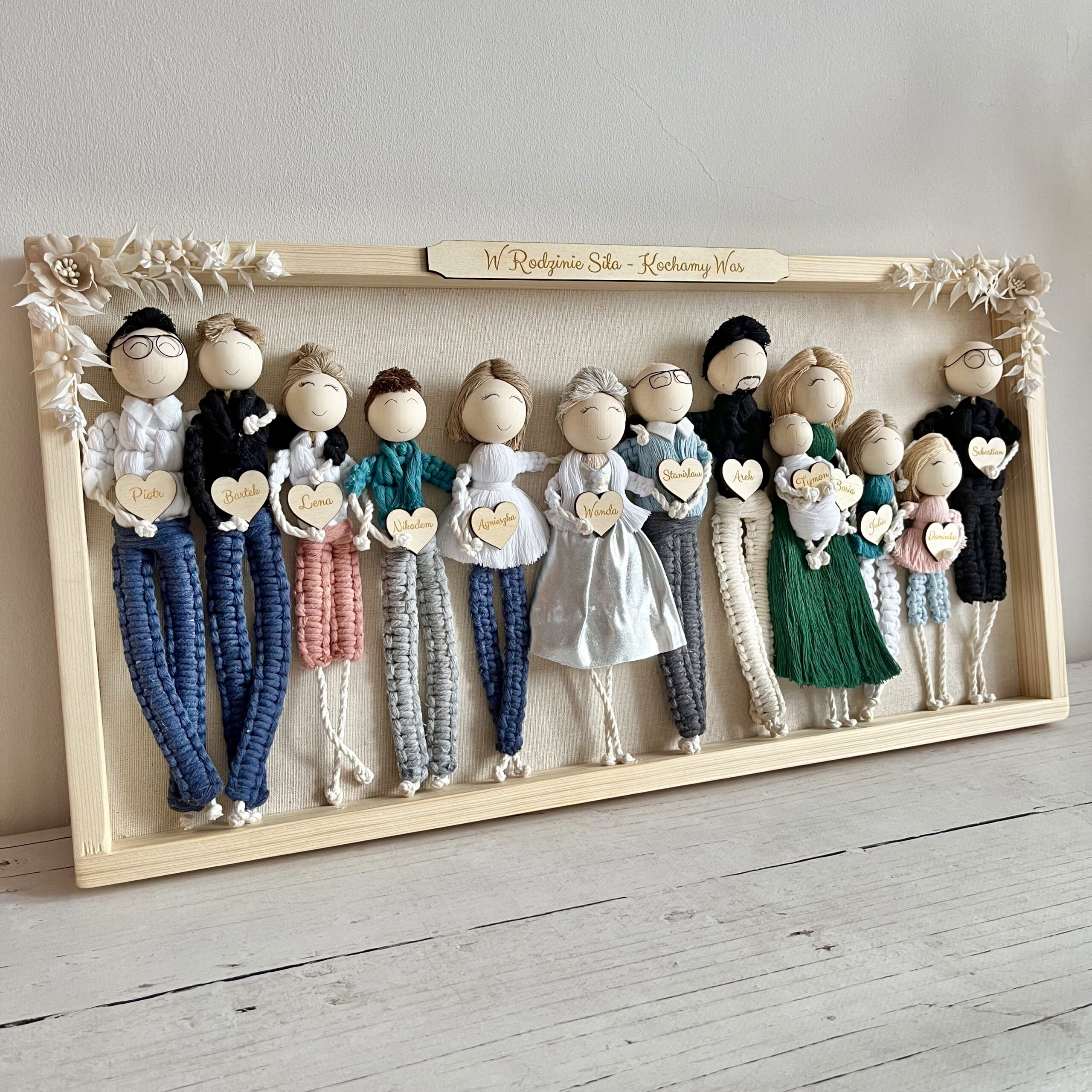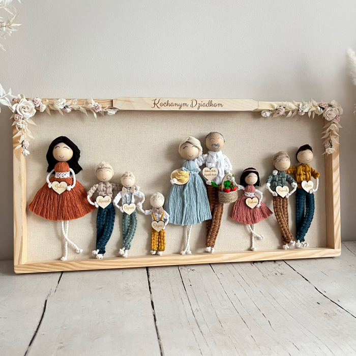Ramka na Dzień Babci i Dziadka XXL – makramowe laleczki z dziadkami i wnukami