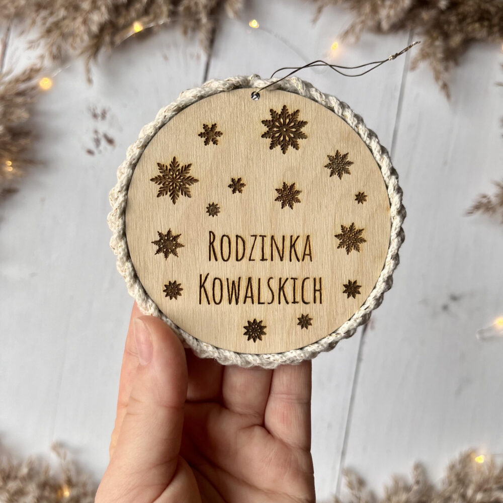 🌟 Rodzinny akcent – grawer z nazwiskiem i imionami w serduszkach sprawia, że bombka staje się niepowtarzalną pamiątką rodzinną.