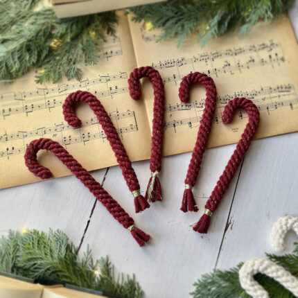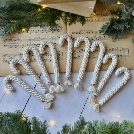 Makramowe laski świąteczne Candy Cane, ozdoby świąteczne na choinkę do stroika
