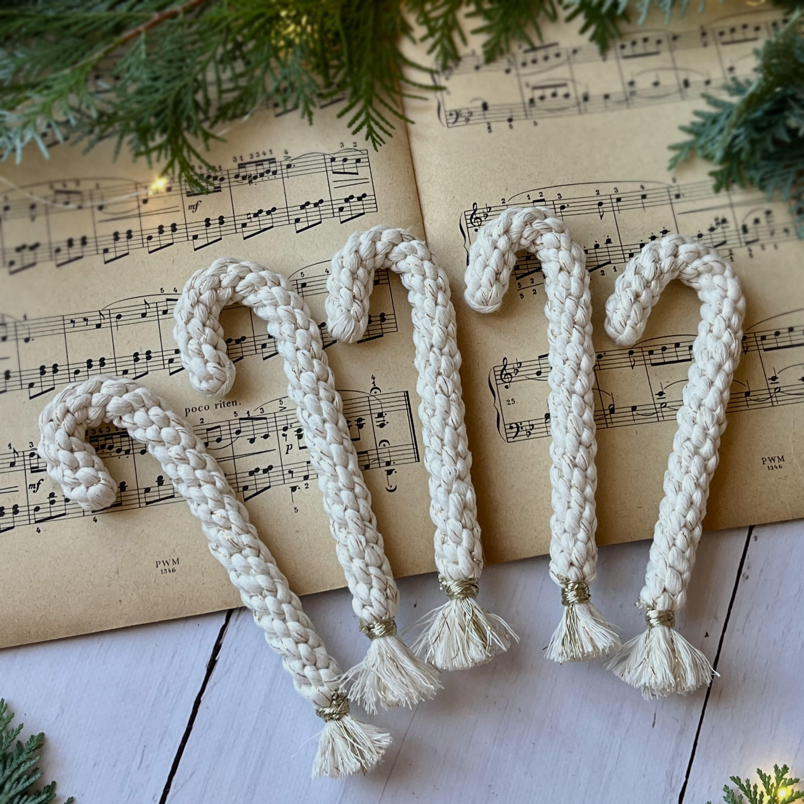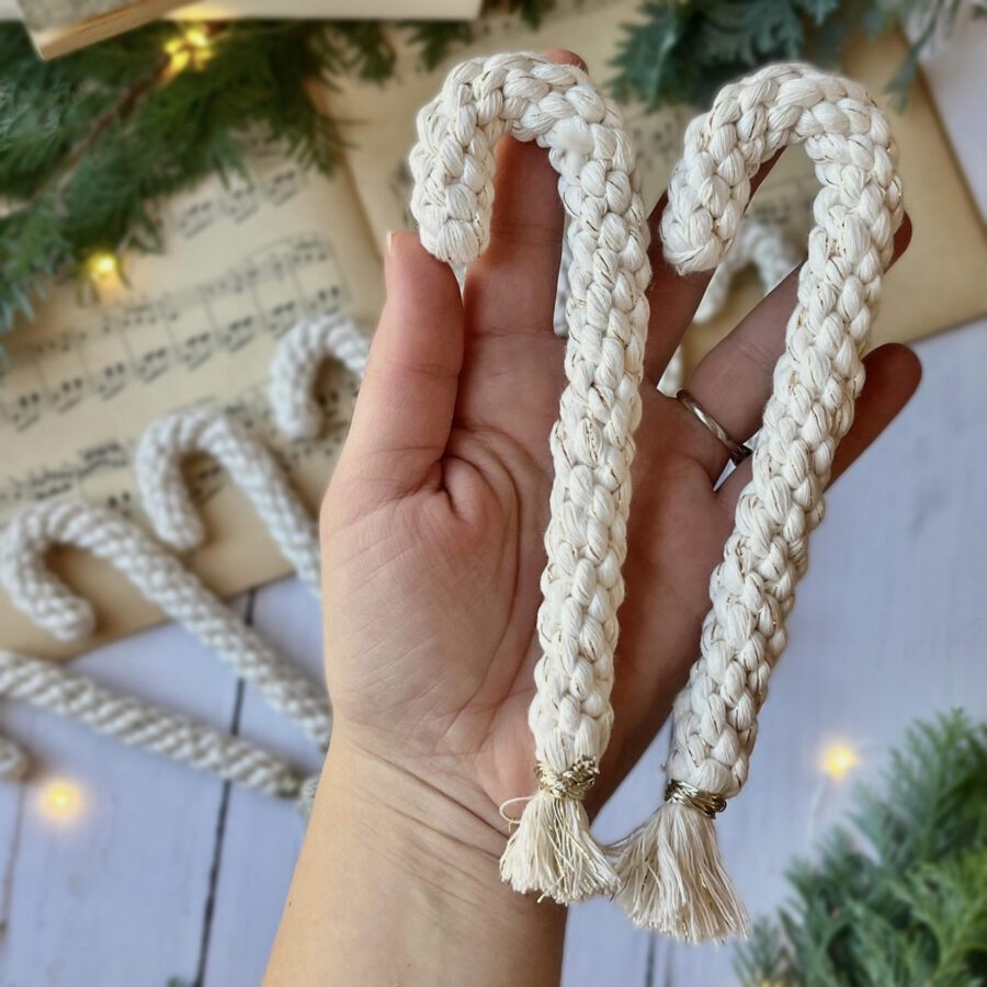 Makramowe laski świąteczne Candy Cane, ozdoby świąteczne na choinkę do stroika