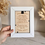 Dzięki możliwości personalizacji stworzysz unikalny upominek, który wzruszy i pozostanie z dzieckiem na długie lata. Ramka, choć prosta w formie, zachwyca elegancją i lekkością – świetnie wpisuje się w każdy dziecięcy pokój i rodzinne wnętrze.