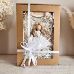 Aniołek zostanie zapakowany w ozdobną bibułkę oraz pudełko z wypełnieniem, co sprawia, że jest gotowy do wręczenia jako prezent. Za dodatkową opłatą oferuję pakowanie w pudełko z okienkiem i wstążką. Dzięki starannemu pakowaniu, całość zyskuje na elegancji i będzie doskonałą pamiątką na długo po uroczystości.