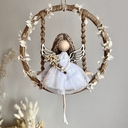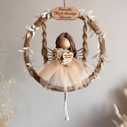 Ten makramowy aniołek to doskonały prezent dla bliskiej osoby. Będzie idealny na urodziny, chrzciny, roczek, Dzień Mamy lub jako ozdoba, która doda bajkowego uroku w pokoju dziecka. Będzie oryginalną ozdobą, która stworzy bajkową atmosferę w pokoju dziecka.