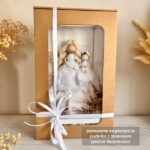 Standardowo pakuję aniołka w bibułę i kartonik. Dla bardziej eleganckiego efektu oferuję pakowanie w pudełko z okienkiem i wstążką, gotowe do wręczenia. To idealny sposób, aby Twój makramowy aniołek na chrzest zrobił niezapomniane wrażenie.
