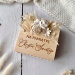 Drewniane pudełko, szkatułka z życzeniami na chrzest i komunię