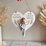 Serce, o wymiarach 17,5cm x 15cm posiada praktyczną zawieszkę ze sznurka, dzięki której można je powiesić w dowolnym miejscu. Grawer „Kochany Ojcze Chrzestny – Dziękuję za obecność w tym wyjątkowym dniu” nadaje podarunkowi osobistego charakteru i podkreśla jego wyjątkowość.