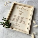 Podziękowanie w drewnianej ramie to nie tylko gest wdzięczności, ale także trwała i elegancka pamiątka. Dzięki swojej personalizacji i ponadczasowemu designowi wzbudzi wzruszenie oraz uśmiech u ojca chrzestnego.