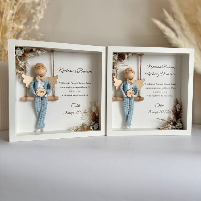 Aniołek w ramce, podziękowanie komunia i chrzest, dla chrzestnych i dziadków
