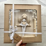 Standardowo pakuję aniołki w papier i kartonik, a także zabezpieczam je do wysyłki. Jeśli chcesz, aby prezent wyglądał jeszcze bardziej efektownie możesz wybrać dodatkową opcję pakowania na prezent. Wówczas aniołek będzie w pudełeczku z okienkiem i wstążką.