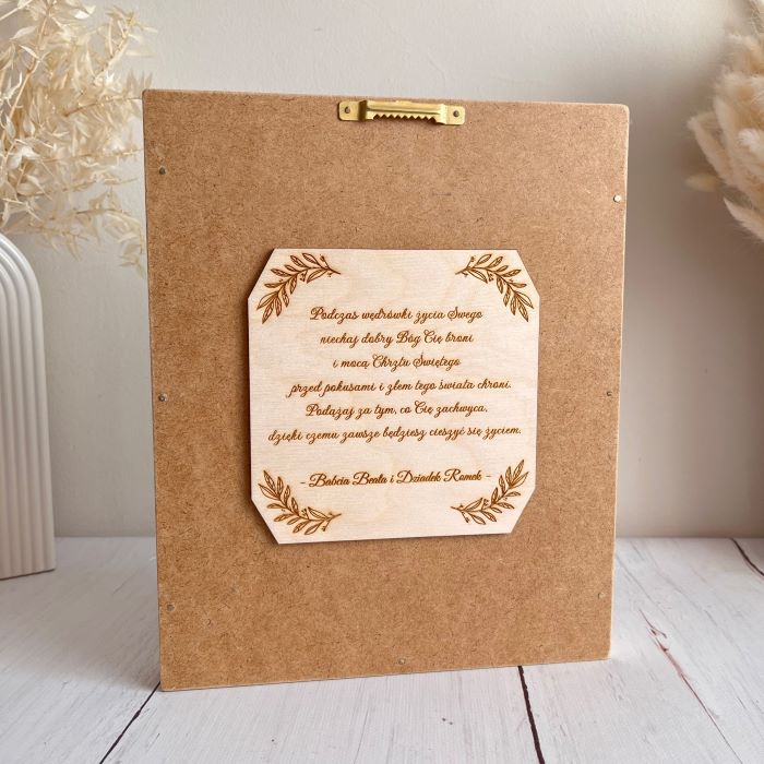 Wyjątkowy anioł dla chłopca w drewnianej ramce to doskonały prezent na Komunię Świętą, Chrzest i urodziny. Anioł stróż może zostać ofiarowany zarówno przez przez chrzestnych, rodziców, jak i dziadków. Będzie też piękną formą podziękowania dla Ojca Chrzestnego. Wykonanie z naturalnych materiałów sprawi, że wnętrze z tym aniołkiem stanie się cieplejsze i bardziej przytulne.