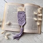 Makramowa zakładka do książki wykonana ze sznurka bawełnianego.