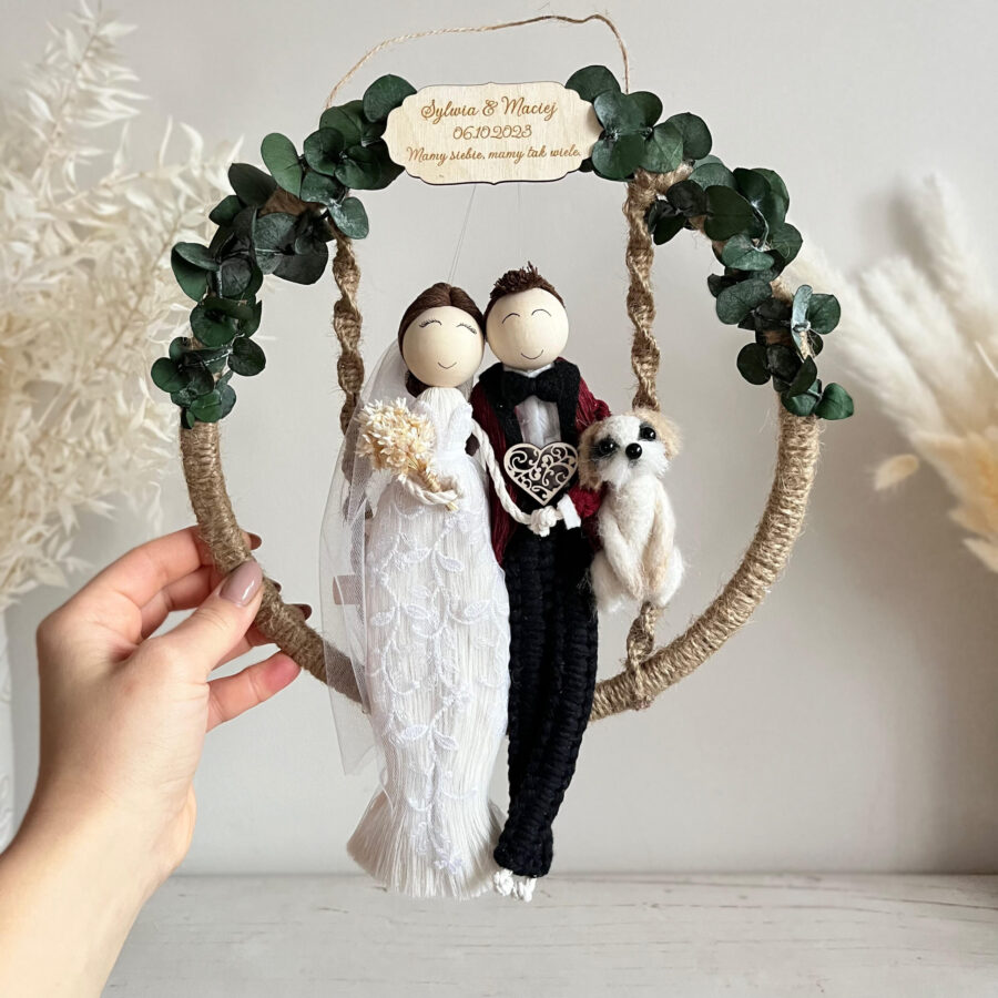Makramowe laleczki w obręczy – wyjątkowy ręcznie robiony prezent ślubny