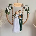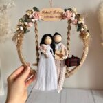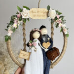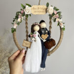 Makramowe laleczki w obręczy to wyjątkowy prezent ślubny, który w piękny sposób uchwyci najważniejsze chwile w życiu pary młodej. To nie tylko dekoracja, ale także symbol miłości, bliskości i wspólnej drogi. Rustykalna kompozycja, zdobiona naturalnymi materiałami i kwiatami, wnosi do wnętrza ciepło i harmonię.