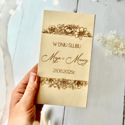 🪧 Tabliczka: dowolny tekst, np. imiona pary młodej i data ślubu