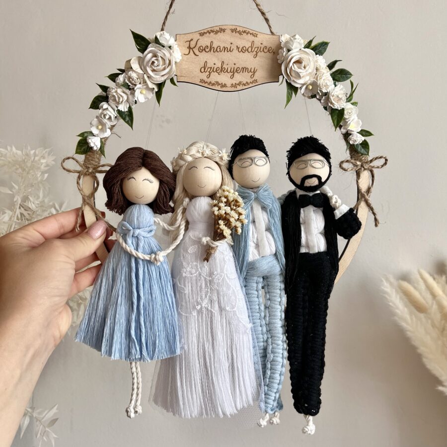 Makramowe laleczki w kwiatowym wianku – wyjątkowe podziękowanie dla rodziców