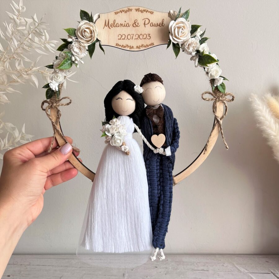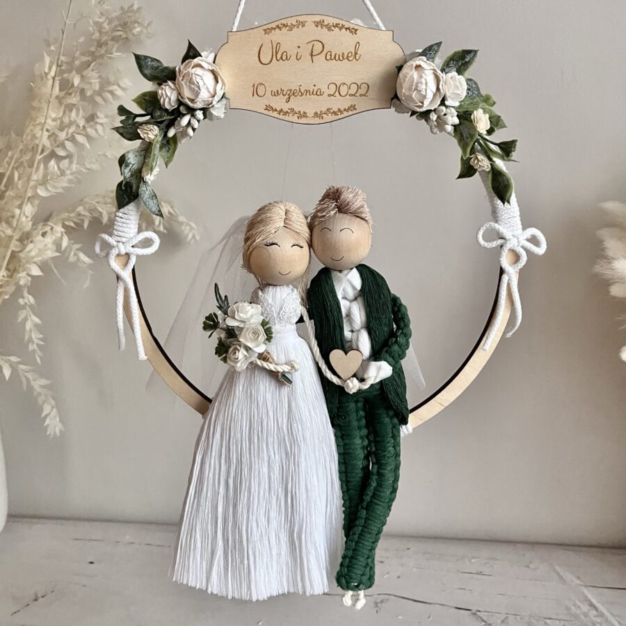 Szukasz niezwykłej pamiątki, która uwieczni jeden z najpiękniejszych dni w życiu nowożeńców? Makramowe laleczki ślubne w kwiatowej obręczy to nie tylko oryginalna dekoracja, ale także prezent o głębokim znaczeniu symbolicznym. Personalizowany portret to również świetny pomysł na prezent z okazji rocznicy ślubu.