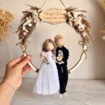 Szukasz prezentu, który w niebanalny sposób uwieczni dzień ślubu? Makramowy portret młodej pary w obręczy ozdobionej suszonymi kwiatami i trawami to niezwykła pamiątka, która zachwyci swoją symboliką i urokiem. Urocze laleczki, tworzone jako miniaturowe odpowiedniki prawdziwych osób, będą nie tylko oryginalną dekoracją, lecz także prezentem o głębokim znaczeniu. Co więcej, spersonalizowany portret świetnie sprawdzi się również jako podarunek z okazji rocznicy ślubu.