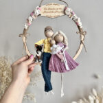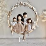 Makramowa rodzinka w obręczy, laleczki w suszonym wianku – personalizowana rodzinka