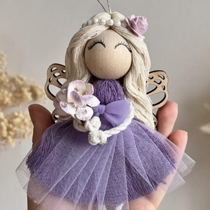 Delikatny makramowy anioł z zawieszką będzie idealnym prezentem z okazji urodzin, roczku lub Chrztu małej dziewczynki. Aniołka możesz także podarować bliskiej osobie z okazji imienin albo z okazji Dnia Mamy. Będzie stanowił piękną ozdobą pokoju dziecięcego i stworzy prawdziwie bajkowy klimat.