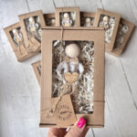 Aniołek zapakowany w eleganckie pudełko z okienkiem czeka na wręczenie jako piękny prezent. Ręczne wykonanie gwarantuje, że każdy aniołek ma swój niepowtarzalny urok oraz drobne różnice, co dodaje mu wyjątkowości. Taki upominek nie tylko zachwyca obdarowanego, ale także staje się piękną dekoracją, która przypomina o najważniejszych chwilach w życiu.